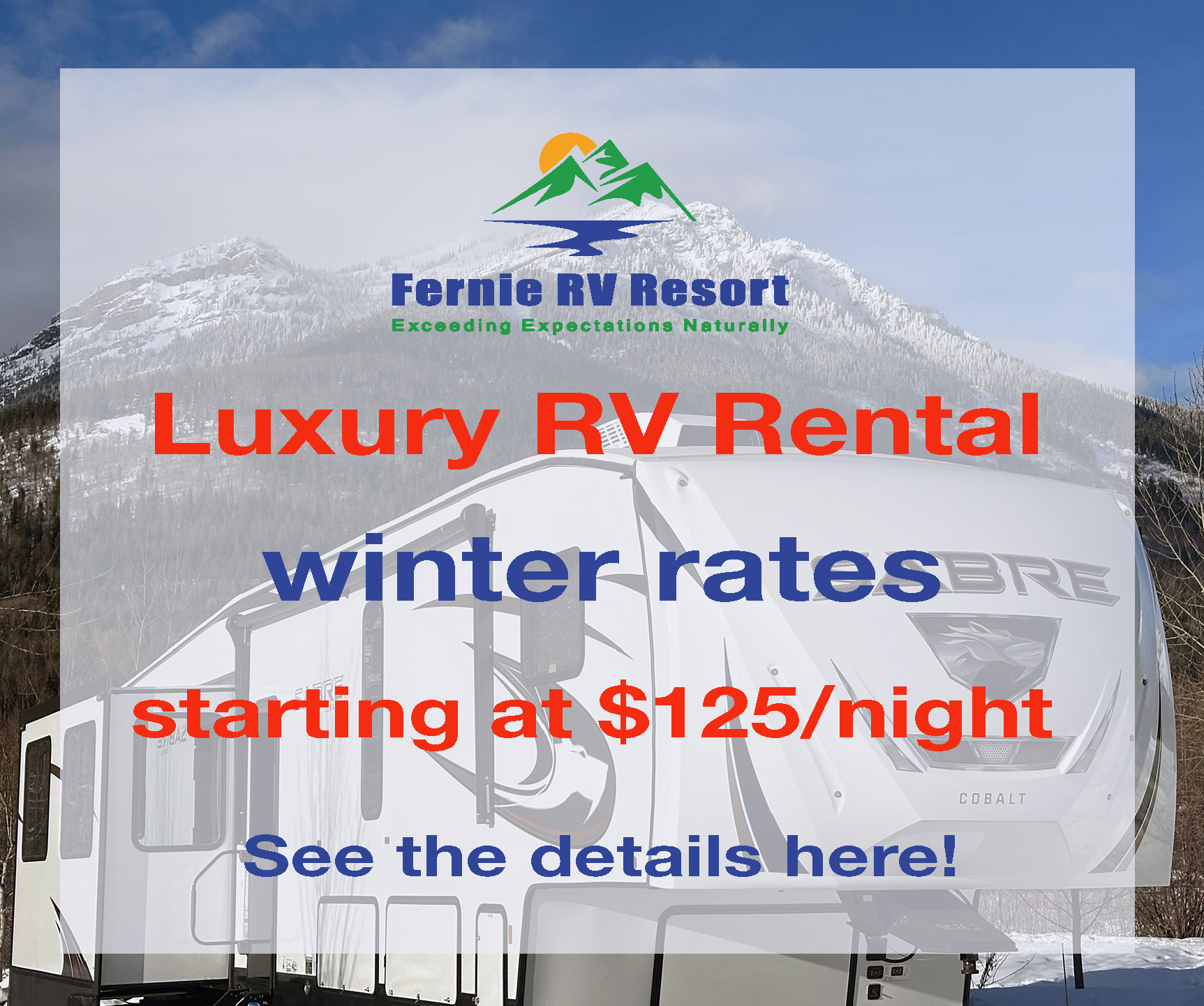 The FRVR offers groomed trails starting at your RV and a Shuttle Service to the lifts! See our Winter Camping packages here.